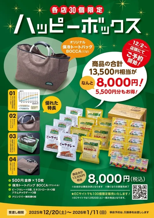 | 予約商品の受け渡し期間 | 2025年12月20日(土)~2026年1月11日(日) |